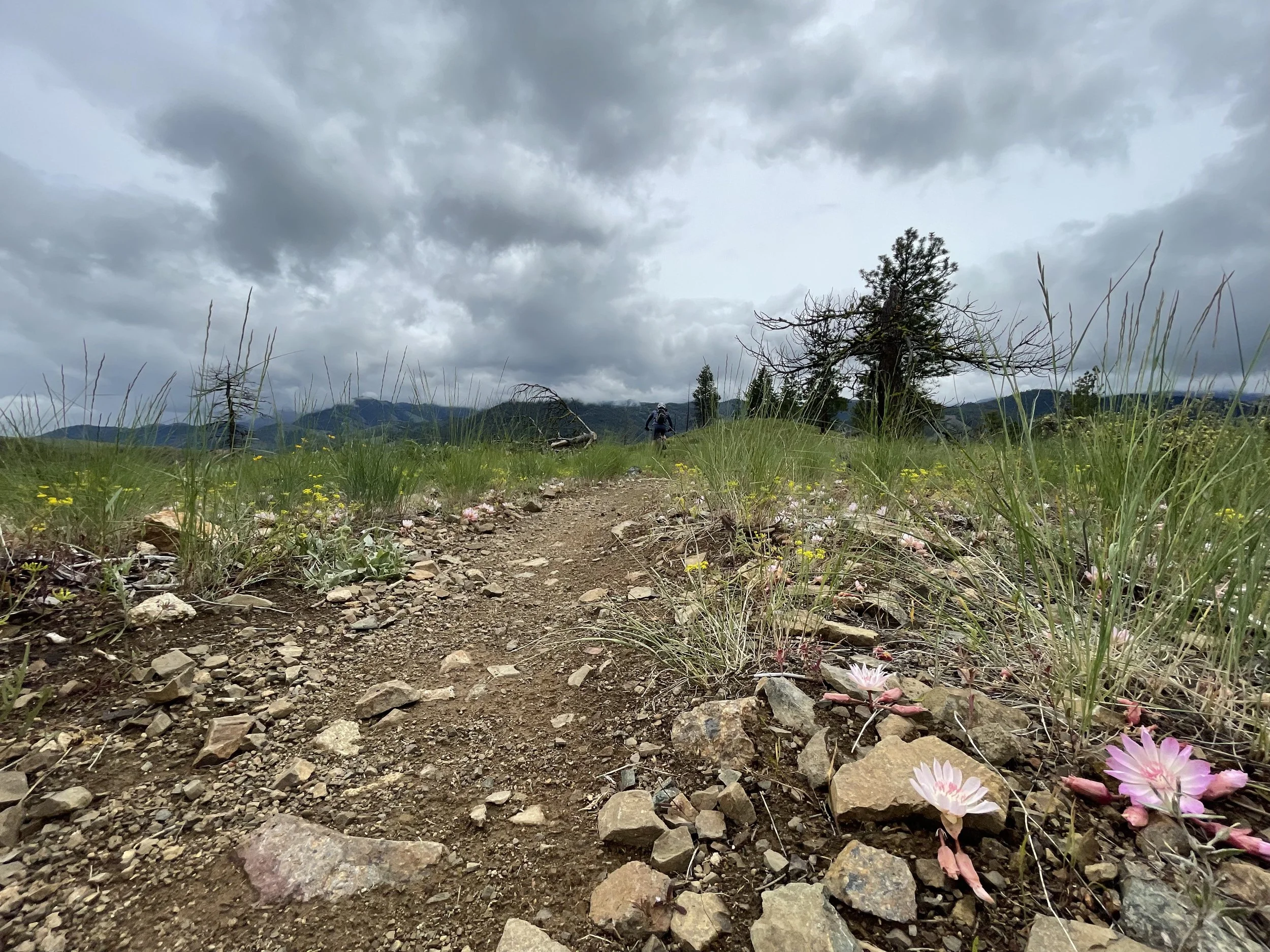 Not coincidentally, I was thinking of this advice the other day as I realized I’ve been mountain biking for almost 20 years. In that short, short time I’ve learned many lessons, thanks to lots of friends like Jim. And I can finally say that these days I’m mostly able to focus on pedaling out the rough spots, smoothing over the obstacles in the trail while working out the annoying rocky thoughts about life that spin through my head. This advice has served me well in many aspects of my life—always when I’m focusing on what’s lacking instead of what’s right in front of me. I try to remind myself that they invited me (they being life, sports, the universe, whomever) because they want to bike with me and I want to try my best to keep it that way. I treasure the challenges of the uphill. I no longer see my bike as a wrestling opponent (most days). I’ve slowly gotten a teeny, tiny bit faster. And more often than not, I arrive at the waiting pack and smile. “Thanks for waiting!” I call as they speed off downhill.